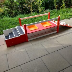 Grosse Spielburg Masse Brücke: L 125cm/ B 65cm / H 30cm Masse Burg: 65×65cm Preis 750.-